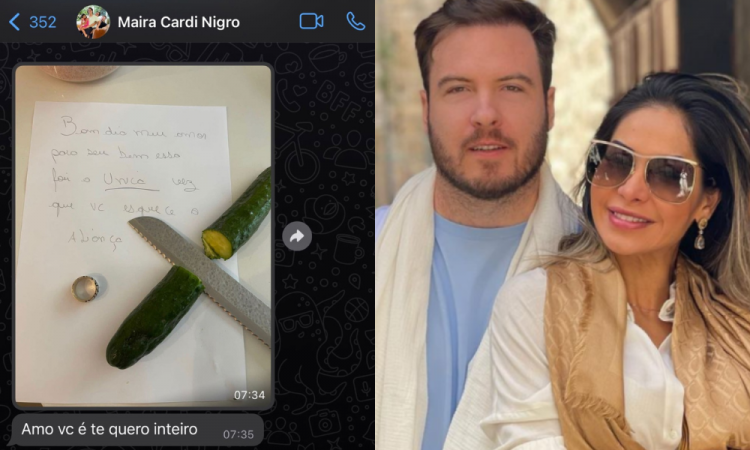 Maíra Cardi deixa recado com pepino e faca após Primo Rico esquecer de usar aliança: ‘Te quero inteiro’